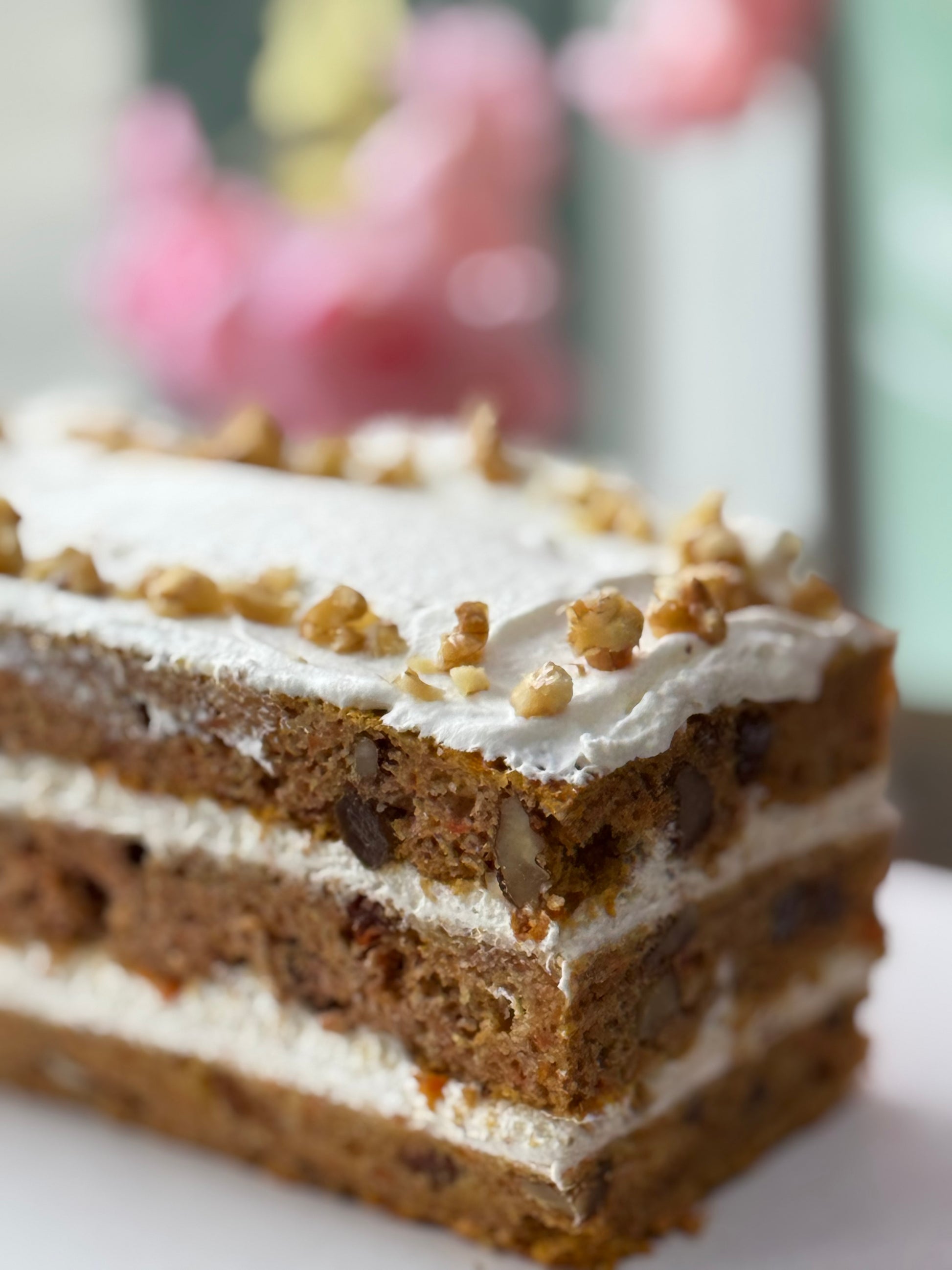 Disfrutá de nuestro delicioso pastel de zanahoria de dos capas, elaborado con ingredientes naturales y cuidadosamente seleccionados para ofrecerte una opción nutritiva y sabrosa.