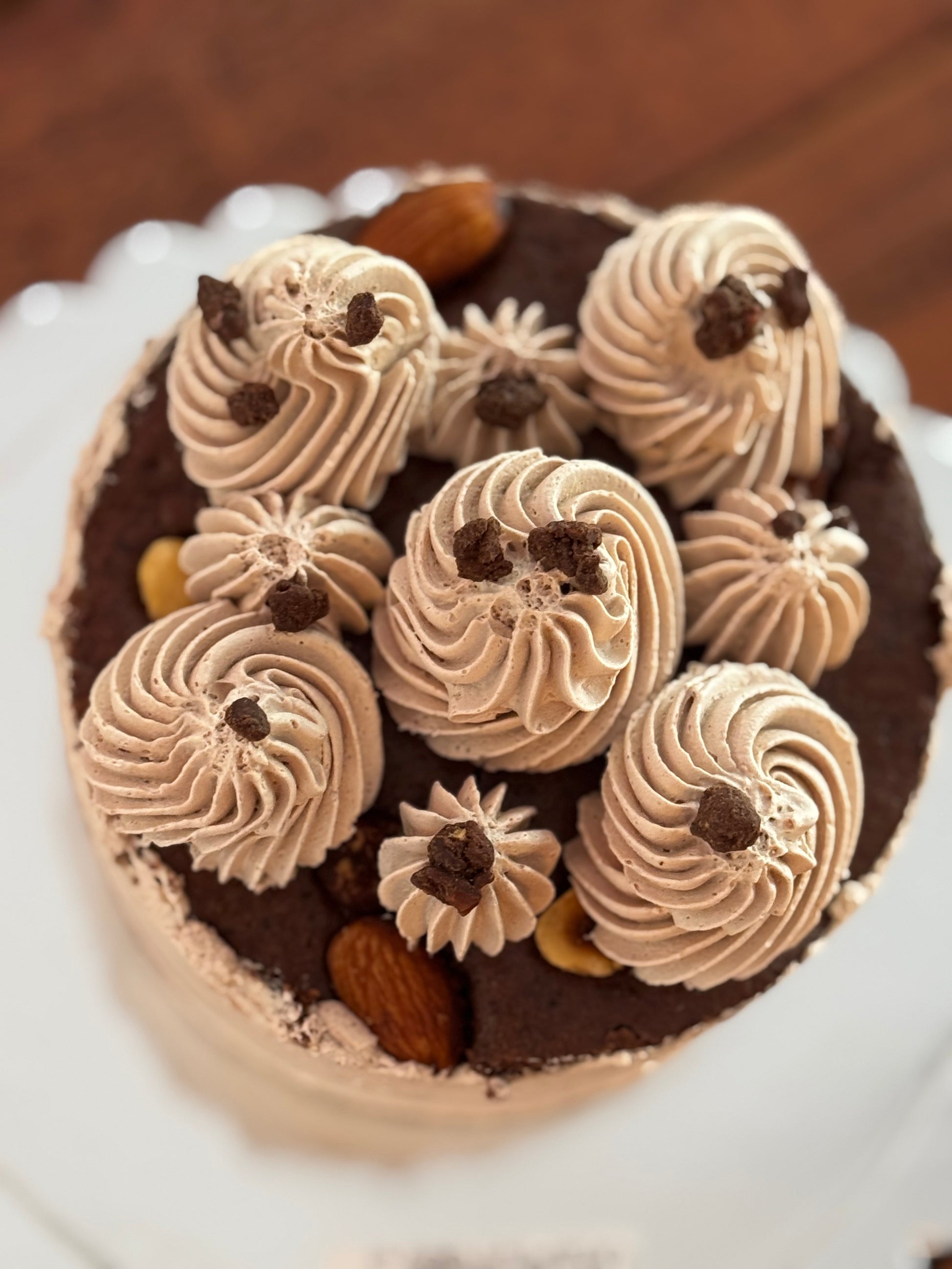 Nuestro bizcocho de chocolate de dos capas, con nata vegetal moka es la combinación perfecta entre un cacao profundo y una suave crema vegetal con sabor a café. Elaborado sin gluten y sin lactosa, es ideal para personas con intolerancias o que buscan opciones más ligeras, sin renunciar al sabor.